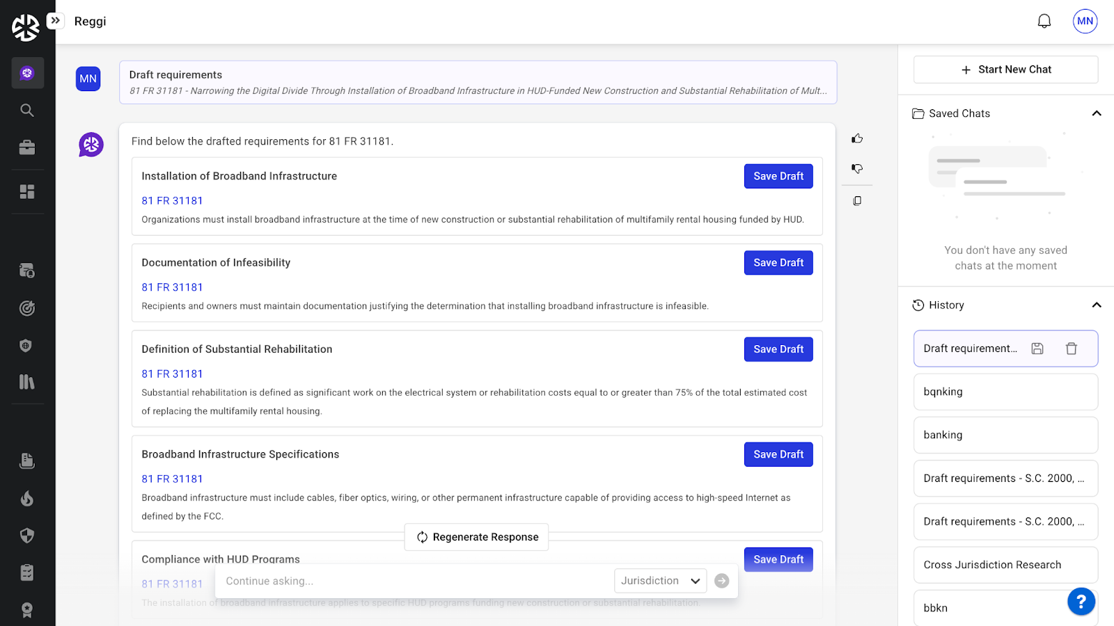 Click Save Draft to store a selected requirement.