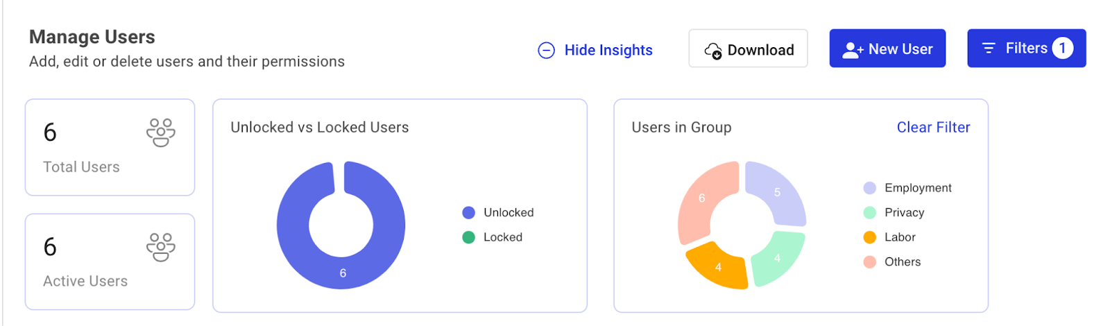 We've introduced an insights panel in user administration for quick user analysis. The panel is configuration-driven and can be collapsed for convenience.