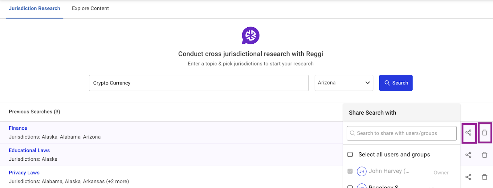 You can now create and share a multi-jurisdictional research project with other users and groups. This can be accessed from the Jurisdiction Research tab in the Research Module.