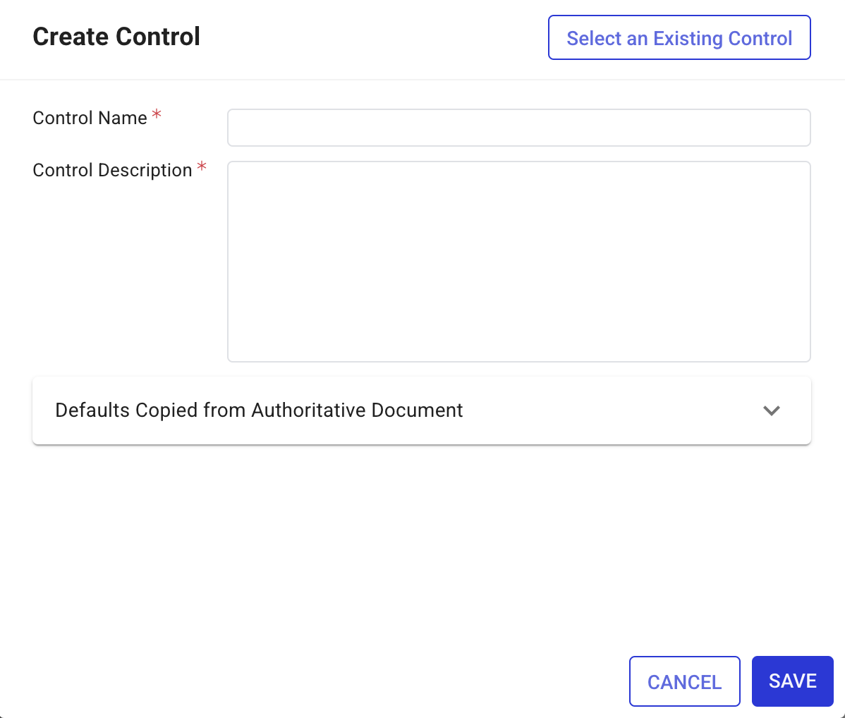 Use the Select an Existing Control field to choose a control or enter details and click Save.
