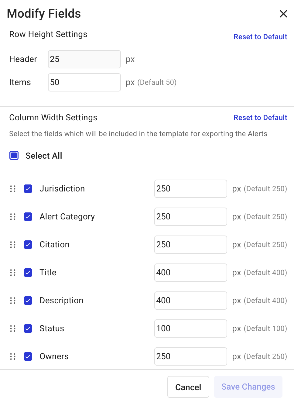 Items (項目): レポート エントリ項目の行の高さを調整します。