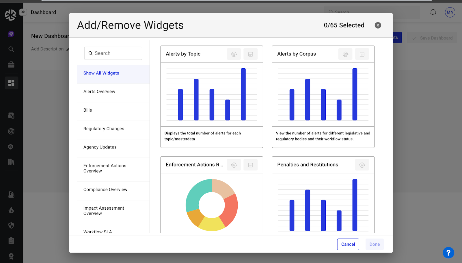 [ウィジェットの追加] をクリックして、ダッシュボードに表示するデータ ウィジェットを選択します。