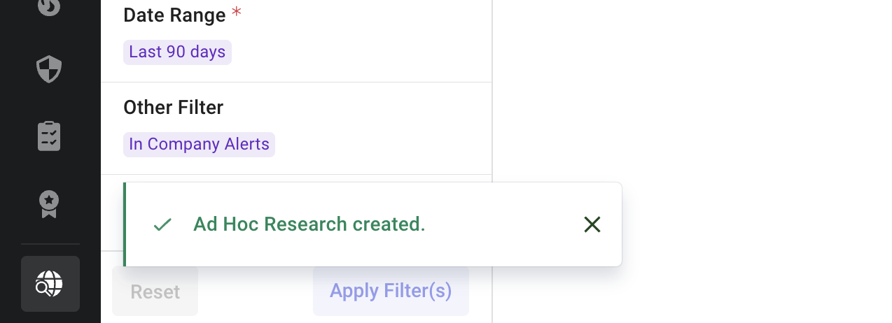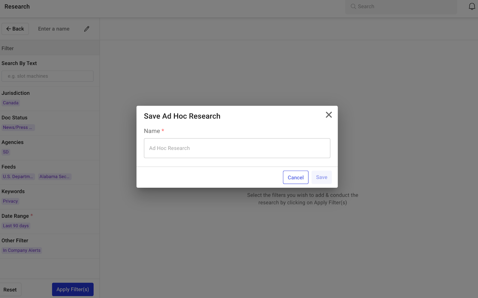 [アドホック調査の保存] ポップアップが表示されます。