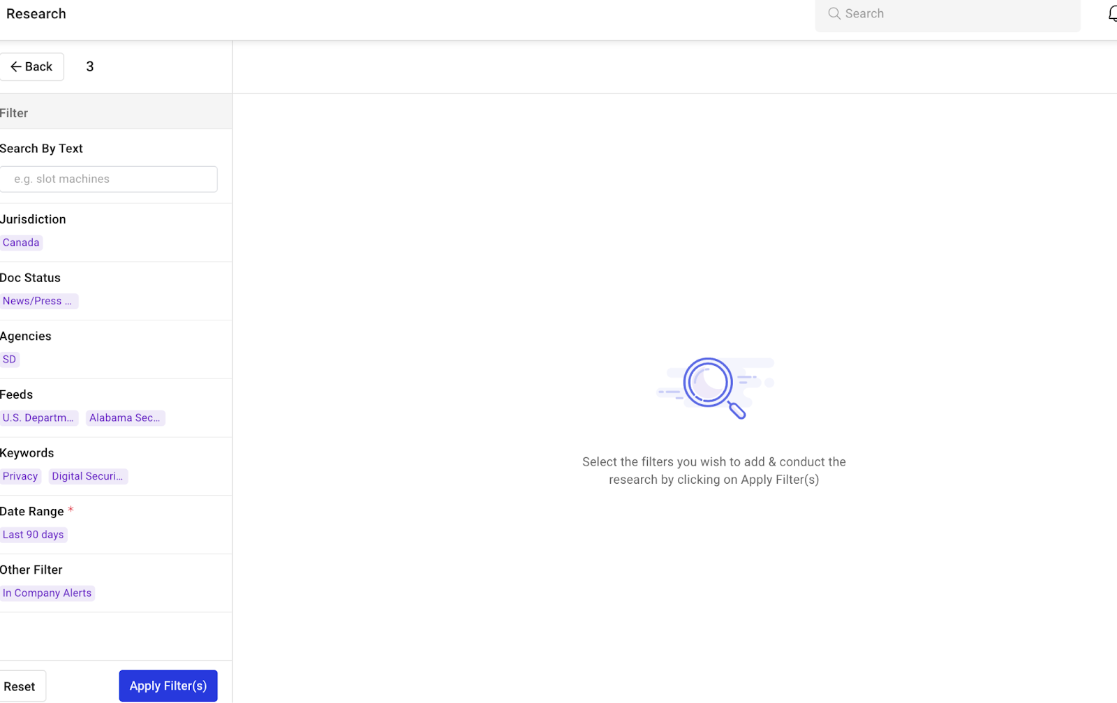 調査フィルターを選択します。次のフィルターが含まれます。