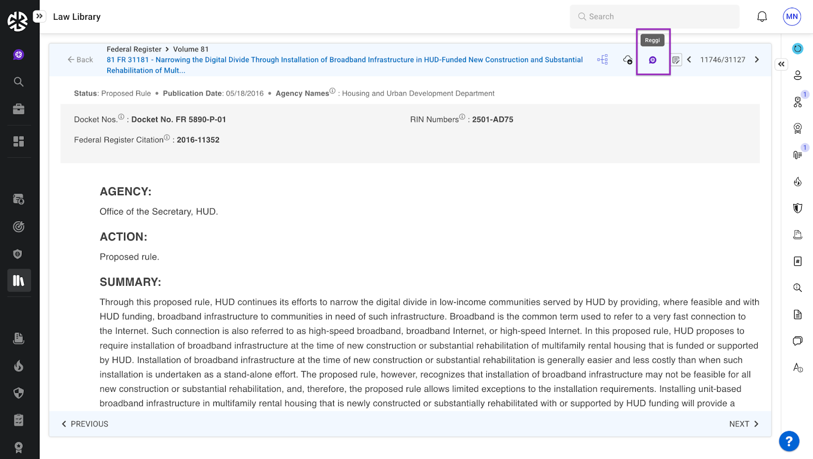 法律ライブラリで文書を開きます。