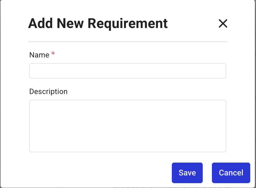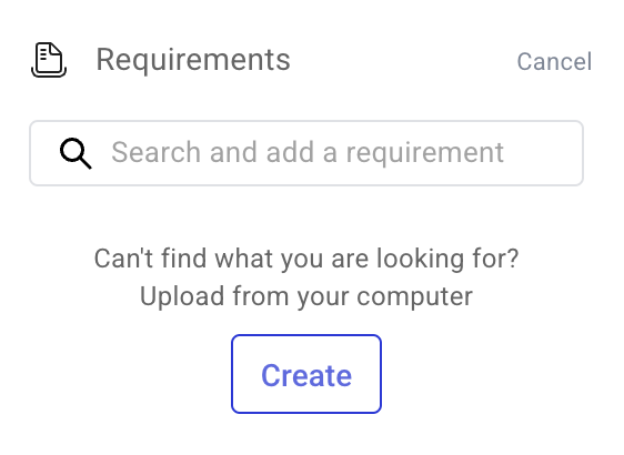 検索バーを使用して既存の要件を検索して割り当てるか、[作成] をクリックして新しい要件を追加します。