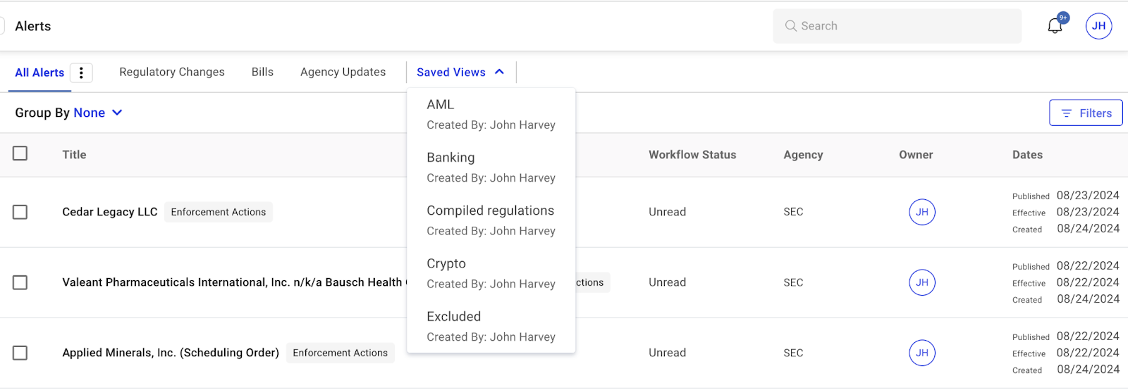 We’ve added a default saved view in the Alerts tab under My Work, specifically tailored for "Open Alerts” or “Open IA". This view automatically filters out alerts and impact assessments that are in open status, making it easier for users to focus on managing their tasks. This update is part of our efforts to simplify navigation and improve efficiency within Regology, helping users quickly access and prioritize their open tasks.