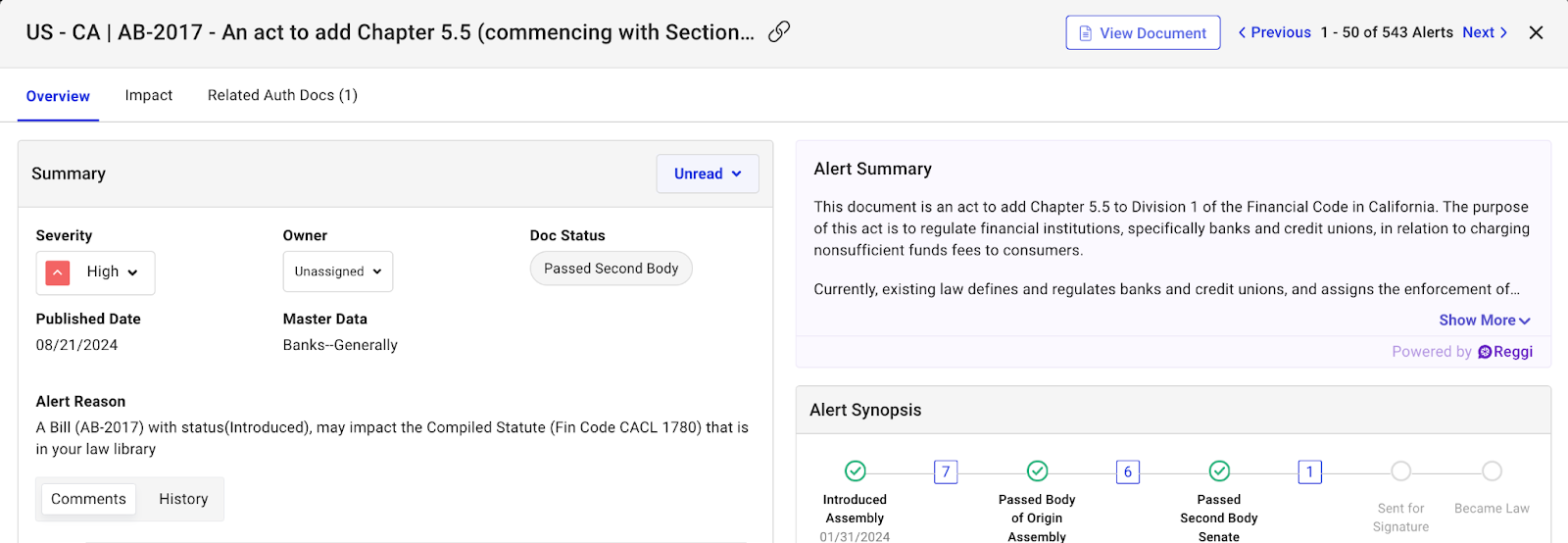 Users can now see the Reggi-generated Alert Summaries as part of Alerts Excel Exports. This feature can be enabled from the Administration Settings. Summary will also be pushed to GRC systems.