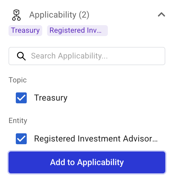 [該当性を検索] フィールドから新しい適用分野を追加します。