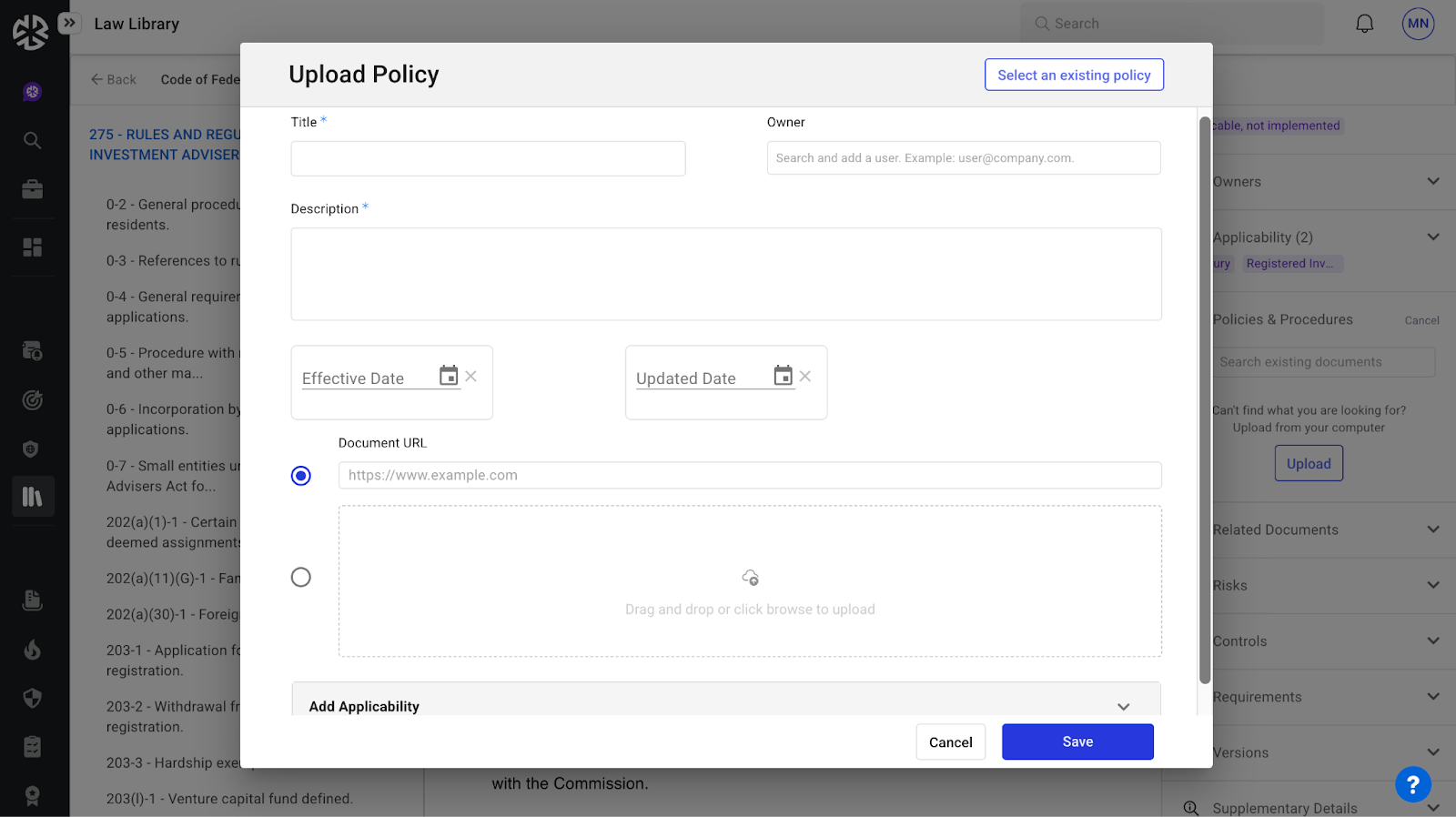 新しいポリシーまたは手順を追加するには、[アップロード] をクリックします。