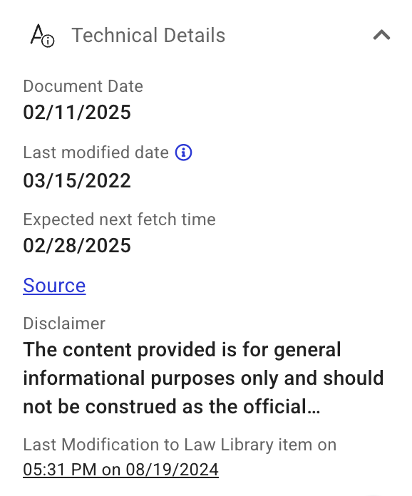特定のトピックまたは管轄区域をクリックすると、それに関連する公式文書が表示されます。