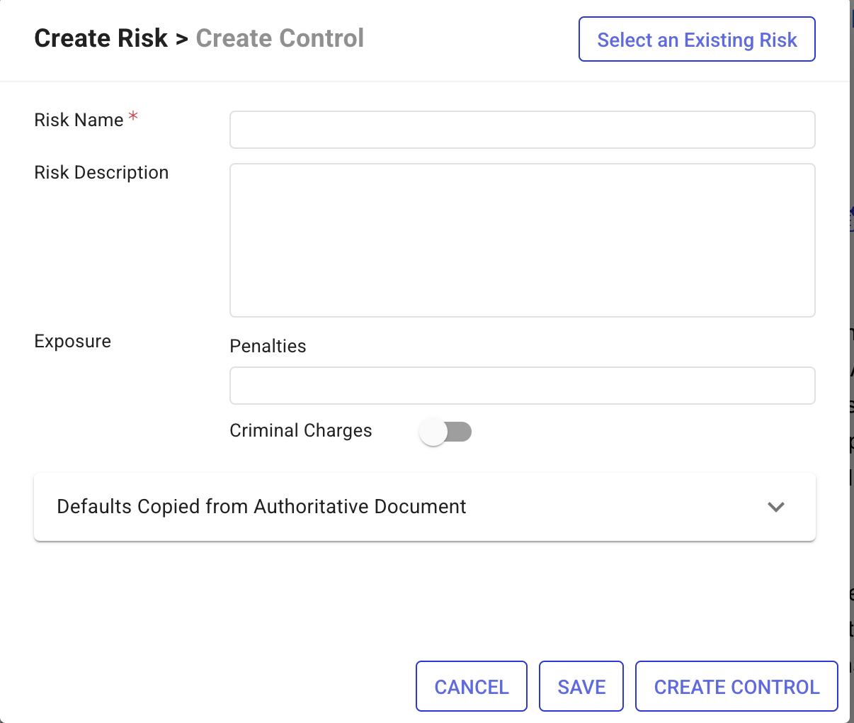 [リスクの割り当て] をクリックして、 Regology 既存のリスクを選択するか、新規リスクを作成します。